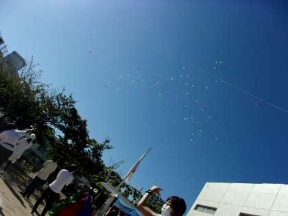 創立50周年記念運動会2 公開日 2022/10/15 更新日 2022/10/15 幼稚園日記 開会式の中で子どもたちのメッセージを付けた風船を飛ばしました。青い空に色とりどりの風船があがってとても綺麗でした。良い記念になりました。 いいね(0)