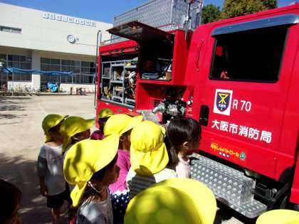 消防自動車を見たよ 公開日 2022/10/20 更新日 2022/10/20 幼稚園日記 幼稚園に消防自動車がやってきました。はしごを伸ばして見せて下さったり消防自動車を見学したりしました。子どもたちは興味深々。消防士さんに進んで質問する姿が見られました。 いいね(0)
