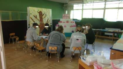 創立50周年記念お祝い会が近づき、朝からPTA役員さんが集まって準備をしてくださいました。当日は受付等もしてくださいます。ありがとうございます。