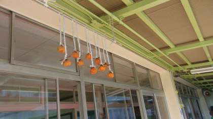 さて、テラスを見てみると、収穫して干しておいた柿の水分が抜け、小さくなっていました。もう少しで食べ頃でしょうか。