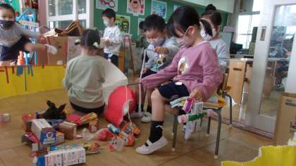 一緒に遊ぶって楽しいね 公開日 2022/11/24 更新日 2022/11/24 幼稚園日記 廊下で楽しそうな声が聞こえてきました。「まだまだ、今から準備するからちょっと待ってね」「この魚釣ろう!」4歳児の子どもたちが自分で遊びの場を用意していました。一緒に準備をし、自分たちで遊び方を考えると、さらに楽しくなりますね。 いいね(0)