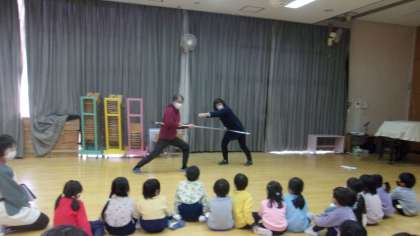 今日は幼稚園に不審者が来たという設定で避難訓練を行いました。不審者対応の避難訓練は2回目でしたが、1回目のことをよく覚えておりどちらのクラスも落ち着いて静かに避難できました。