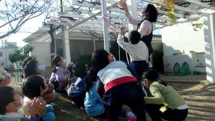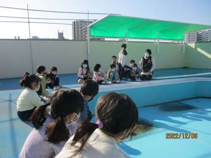 サンタさんへのお手紙 公開日 2022/12/08 更新日 2022/12/08 幼稚園日記 5歳児がサンタさんへの手紙を書きました。さて、どうやってこの手紙をサンタさんに届けるかの話し合いです。すると自分たちの経験から「そうだ!プールに置いたら見てくれる」「去年はブドウの木に置いてたら気づいてくれた」「風船で飛ばしたらいい」と次々にアイディアが出てきます。「サンタさん来てほしいなぁ」「会いたいなぁ」と夢が膨らんでいます。 いいね(0)
