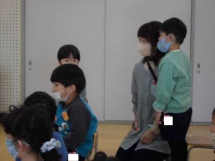 昨日は劇遊び、今日は歌と合奏の予行をしました。お互いのクラスの演技を見合った後、感じたことを話し合いました。「上手だった」だけではなく、どう上手だったのかを詳しく話す姿が見られました。緊張しながらも友達に見てもらうことを楽しんでいました。保育後は教員で意見交換をしました。来週からがますます楽しみです。