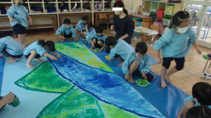 今度はお家の人に見てもらうことを楽しみに、劇のお話をさらに膨らませたり壁面の絵を描いたりしていました。