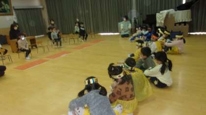 今日は5歳児の劇遊びを4歳児が見に行きました。