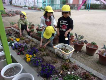 園庭の花壇ではサニーレタスがたくさんできていました。5歳児が収穫して持って帰りました。えのもと農園では旬の野菜が美味しく育っていますよ。
