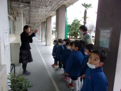 5歳児が榎本小学校の1年生と2年生の授業見学に行きました。真剣な授業の雰囲気に子どもたちは釘付けでした。副校長先生からは「また、いつでも遊びに来てくださいね」と言っていただき大喜びです。進学への期待が高まりました。