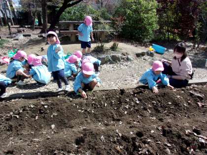 よく知っているジャガイモですが、芽が出ている「種イモ」は子どもたちにとっては珍しいものでした。植える向きに気を付けて丁寧に植えました。