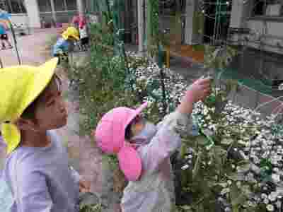 5歳児が日々の遊びの中で「小さいお豆は赤ちゃんだからまだ取らないよ」「赤信号はストップだよ」など、4歳児に方法や約束を知らせている姿をよく見かけます。優しく関わり話しかける姿に年長児らしさを感じます。