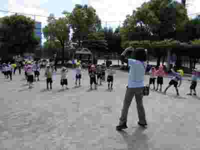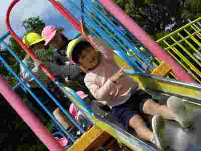 今日は地域の公園に園外散歩に行きました。公園では体操をしたり遊具で遊んだりして存分に楽しみました。