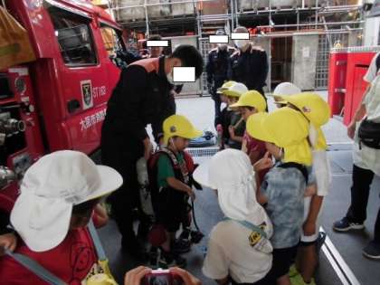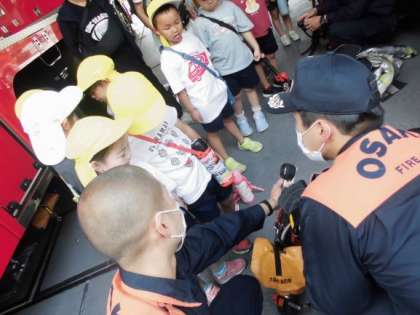 消防署見学に行ったよ 2 公開日 2023/06/05 更新日 2023/06/05 幼稚園日記 消防署では挨拶をした後、消防自動車を見学したり消防士さんの服や装備を見せていただいたりしました。酸素ボンベも実際に背負わせていただき「すごく重いな」と驚いていました。 いいね(0)