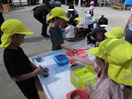小さなお友達がたくさん幼稚園に遊びに来てくれました。いいお天気で色水遊びやスーパーボールすくい、水鉄砲などを一緒に楽しみました。最後のダンスも楽しかったですね。また幼稚園に遊びに来てね。