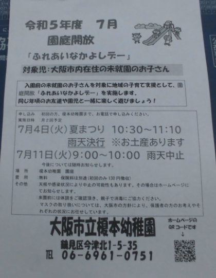 園庭開放「ふれあい仲良しデー」7月のお知らせです。 ぜひご参加ください。