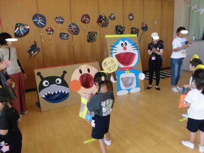 夏まつり楽しかったよ 2 公開日 2023/07/04 更新日 2023/07/04 幼稚園日記 遊戯室には「PTA夏まつりチーム」の方が用意してくださったお店が並び、子どもたちはスーパーボールすくいや、ワニワニパニック、ボール投げなどを楽しみました。夏まつりチームの方々の愛情いっぱいのお店がとても素敵でした。子どもたちの為にたくさん準備してくださって本当にありがとうございました。 いいね(0)