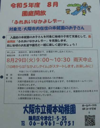園庭開放「ふれあい仲良しデー」8月のお知らせです。 ぜひご参加ください。
