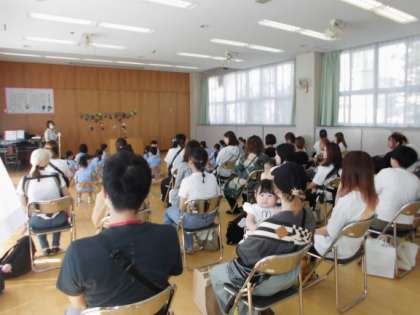 8月25日、いよいよ2学期がスタートしました。久しぶりに会う先生や友達と夏休みにあったことを伝え合う姿が見られました。始業式では園長先生のお話の後、「しりとりうた」を歌ったり「鶴見いきいきサンバ」を踊ったりしました。