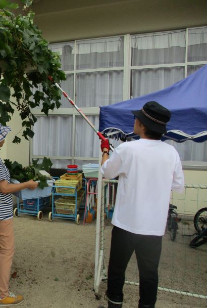 子どもたちから「先生、もう美味しそうだよ」「食べれるんじゃない」と声があがり、園庭のぶどうを収穫することにしました。高いところになっているぶどうは主事さんが採ってくれました。暑さの中にも秋を感じる楽しい経験になりました。たくさんなっているので次回は9月5日のふれあい仲良しデーの時に収穫して、小さなお友達にも分けてあげようと話しています。お楽しみに。