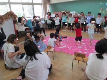 ふれあいなかよしデー 公開日 2023/09/05 更新日 2023/09/05 幼稚園日記 本日も暑い中ご参加いただきありがとうございました。まだまだ暑い日が続いているので引き続き水遊びもしました。今日のふれあいタイムでは、発育測定をしました。その後は、年長児から歌のプレゼントです。一緒に歌ったり、自然と体をうごかしたりしながら、親子で楽しんでいる姿がありました。次回の園庭開放もお待ちしております。ぜひご参加ください。 いいね(0)
