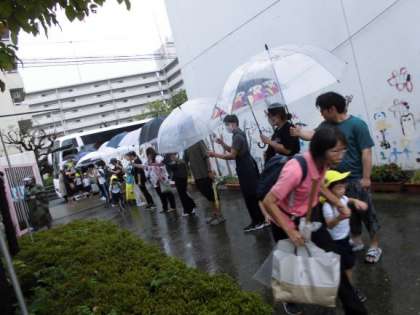 楽しかった園外保育でしたが、幼稚園に着く頃には雨が降ってきました。バスを降りたらどうしようかと思っていると、自然にお家の方々の優しい「傘の橋」ができました。子どもたちが濡れずに幼稚園に入ることができました。感激しました。ありがとうございました。
