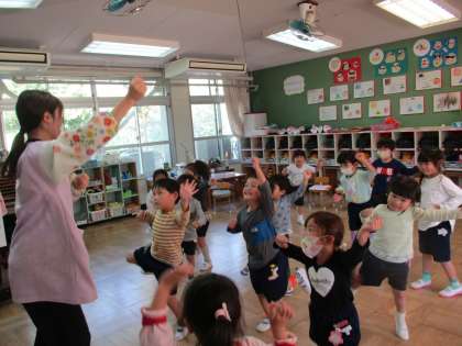 また、年少児もピーマン体操をしました。元気に楽しく体操をしている様子が見られました。