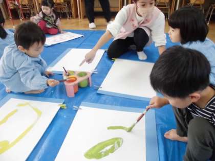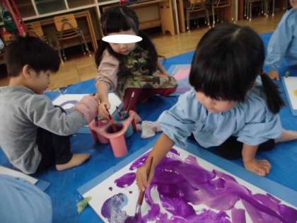 楽しい、楽しい! 公開日 2023/11/08 更新日 2023/11/08 チューリップクラブ 今日はちゅーりっぷクラブのお友達が、 絵の具で絵を描きました。 「早くやりたい」「私はピンクがいい」 初めての絵の具にワクワク。 1枚描くと「もう1枚」したい。 描いた後は指導員の先生にお話をきいて貰って、 大満足でした。 また明日もしようね。 <ちゅーりっぷクラブ実行委員会より> いいね(0)