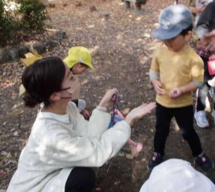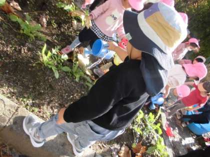 ちゅーりっぷさんも行きたい 公開日 2023/11/29 更新日 2023/11/29 チューリップクラブ 園児と一緒にちゅーりっぷクラブさんも、 「えのもとの森」に行きました。 幼稚園の裏庭を通って行くとはいえ、 園外にできるのは今日が初めて。 「そっち行ったら迷子になるで」 「手つないで」と声をかけてくれる 4歳児と5歳児が大きく見えました。 園児の真似っこをして大根に 水やりをしたり、 どんぐりを見つけたり。 楽しい時間になりました。 いいね(0)