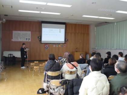 保護者会では、養護教諭からパワーポイントを使って