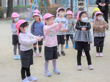走ると暖かいね 公開日 2024/01/10 更新日 2024/01/10 幼稚園日記 今日から朝のマラソンも再スタートしました。 まず体操をして体をしっかり動かした後、 いよいよマラソンです。 すごいスピードで走り出した子どもたち。 元気いっぱいです。 ちゅーりっぷクラブさんも、 体操・マラソンを一緒にしました。 終わった後は、 「なんかぽかぽかする」「あったかいね」 と話していました。 いいね(0)