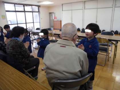 2月15日、4歳児の子どもたちが、榎本福祉会館へ地域の方々とのふれあいに出かけました。