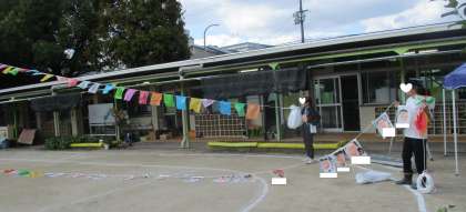 あと3日だよ 公開日 2025/10/09 更新日 2025/10/09 幼稚園日記 土曜日の運動会に向けて、 園内の様子が変わってきました。 保育後に教職員で少しづつ 運動会に向けた準備を進めてきています。 子どもたちが当日に近い雰囲気の中で、 運動会ごっこをすることで、 「期待」や「意欲」に繋がって欲しいと願っています。 ぜひ当日までにお子さんの作った万国旗や、 入退場門を見てあげてください。 いいね(0)