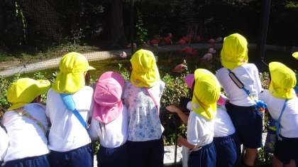 今日はとてもいいお天気になり、子どもたちが楽しみにしていた天王寺動物園に行きました。「ライオンいるかな」「いっぱい動物見たいな〜」と楽しみにする姿がありました。フラミンゴやライオン、ペンギン、レッサーパンダなど、たくさんの動物を見ることができ「楽しかった!」「ライオンが見れて嬉しかった」と思いを伝える様子もありました。たくさんの動物に会うことができ大満足の遠足となりました。