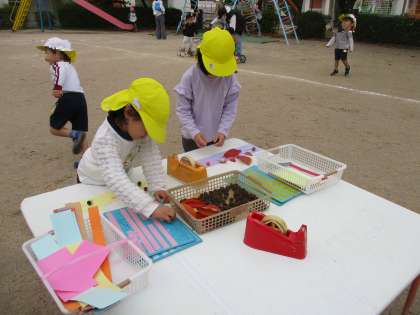 園庭には秋の自然物を使って製作ができるところもあります。