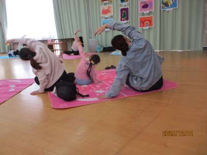 なかよしタイムは、恒例のヨガタイム。