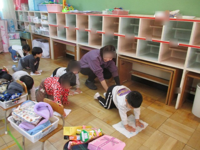 満3歳児プレ保育の「ちゅーりっぷクラブ」は、一足早く2学期最終日。園庭で仲良く遊んだ後は、みんなで保育室を大掃除しました。冬休みも元気に過ごしてね。<ちゅーりっぷクラブ実行委員会>