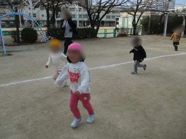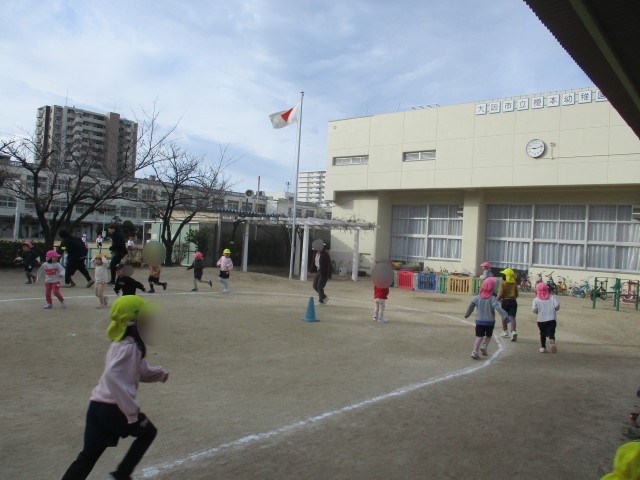 寒さは厳しいですが、子どもたちは元気いっぱいマラソンタイム。「今日は寒いな」「でも走ったらあったかい」と季節や気温の変化を体で感じています。「くじら列車」のおかげで登園時間もとても早くなりました。保護者の皆様もご協力ありがとうございます。