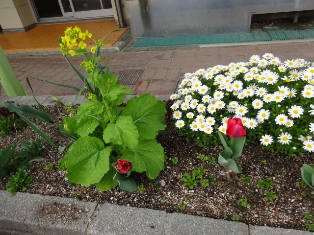 園庭にはチューリップが元気に咲いています。もう少しで咲きそうなチューリップもありました。何色なのか楽しみです。菜の花もきれいな花を咲かせていますよ。榎本幼稚園の桜開花はまだもう少し先のようです。楽しみですね。