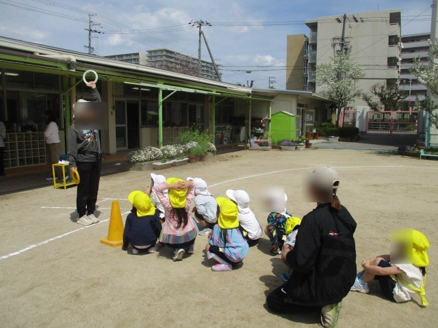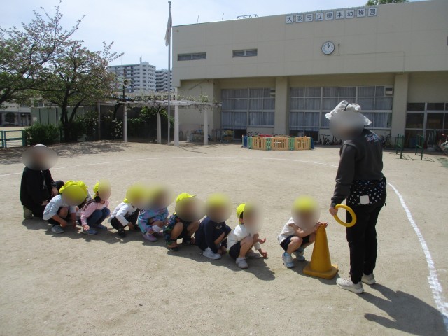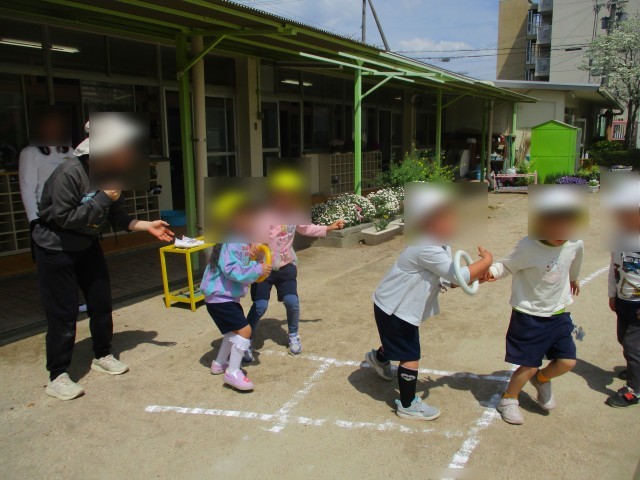 5歳児はリレーをして遊びました。「前のきく組さんみたいに速く走りたい!」と張り切る様子が見られました。