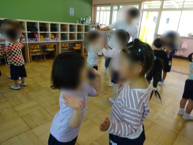 4歳児、5歳児でペアになりダンスをしたりえのもとの森へお散歩したりしました。