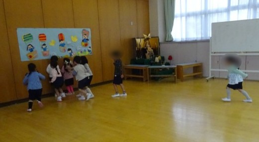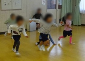 遊戯室では「だるまさんが転んだ」をして遊びました。雨の日でも楽しく過ごす1日となりました。