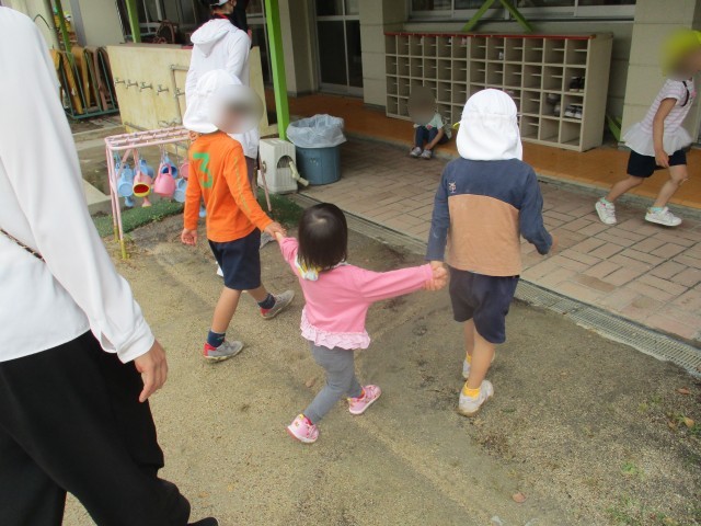 朝少し雨が降っていたこともありましたが、幼稚園に遊びに来てくれました。