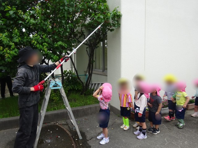 みんなで収穫すると「サクランボいっぱいだね」「美味しいかな~」と楽しみにする姿が見られました。