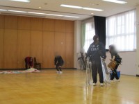 保育後は教職員で発表会の会場づくりをしました。床を水拭きしたり、保護者席をセット...