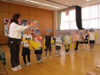 プログラム2番は「4歳児の歌と楽器遊び」。カレーライスの手遊びをしたり、「春がき...