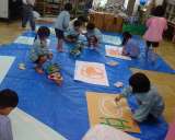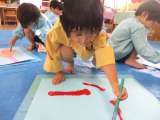 5歳児は、運動会で楽しかったことを絵の具でかいて遊びました。いつもより大きな画...