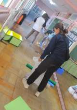 降園後は教職員全員で、 作品展示や最終確認を行っています。 展示や清掃をしなが...