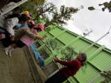 園庭と園舎裏になっていた、姫リンゴとキウイフルーツを収穫しました。 「キウイっ...