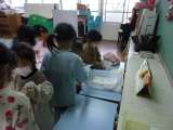 朝の準備をしていると、5歳児のお兄ちゃんお姉ちゃんがやってきて、一緒に朝の用意を...