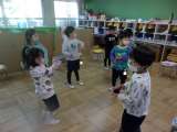 4歳児もも組がふれあい仲良しデーに来てくれた友達を出迎え、受付をしたり遊びに誘っ...