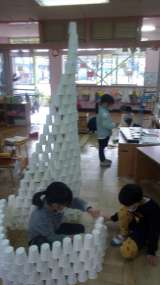 今日は保育室でゆったりと遊んでいました。 素材を組み合わせてつくって遊んだり、楽...